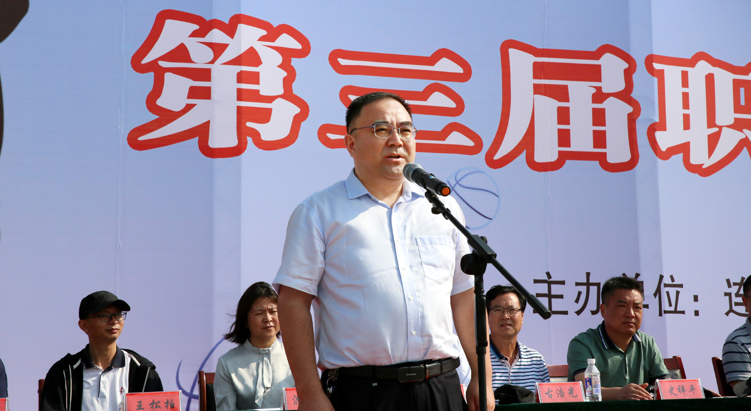 最后,楊龍宣布,連云港市工業投資集團第三屆職工男子籃球賽開幕。一時間,整個會場沸騰起來,彩旗揮動,掌聲、歡呼聲經久不息。