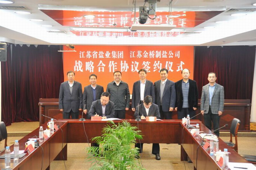 11月8日下午,金橋制鹽公司在南京與江蘇省鹽業(yè)集團簽署戰(zhàn)略合作協(xié)議。集團公司董事長、黨委書記楊龍,副總經(jīng)理楊國新以及金橋制鹽公司負責(zé)人參加了簽約儀式。簽約儀式前,楊龍董事長與省鹽業(yè)集團總經(jīng)理唐正東、副總經(jīng)理鄭海龍以及相關(guān)部門負責(zé)人就應(yīng)對食鹽改革舉行了工作會談。
