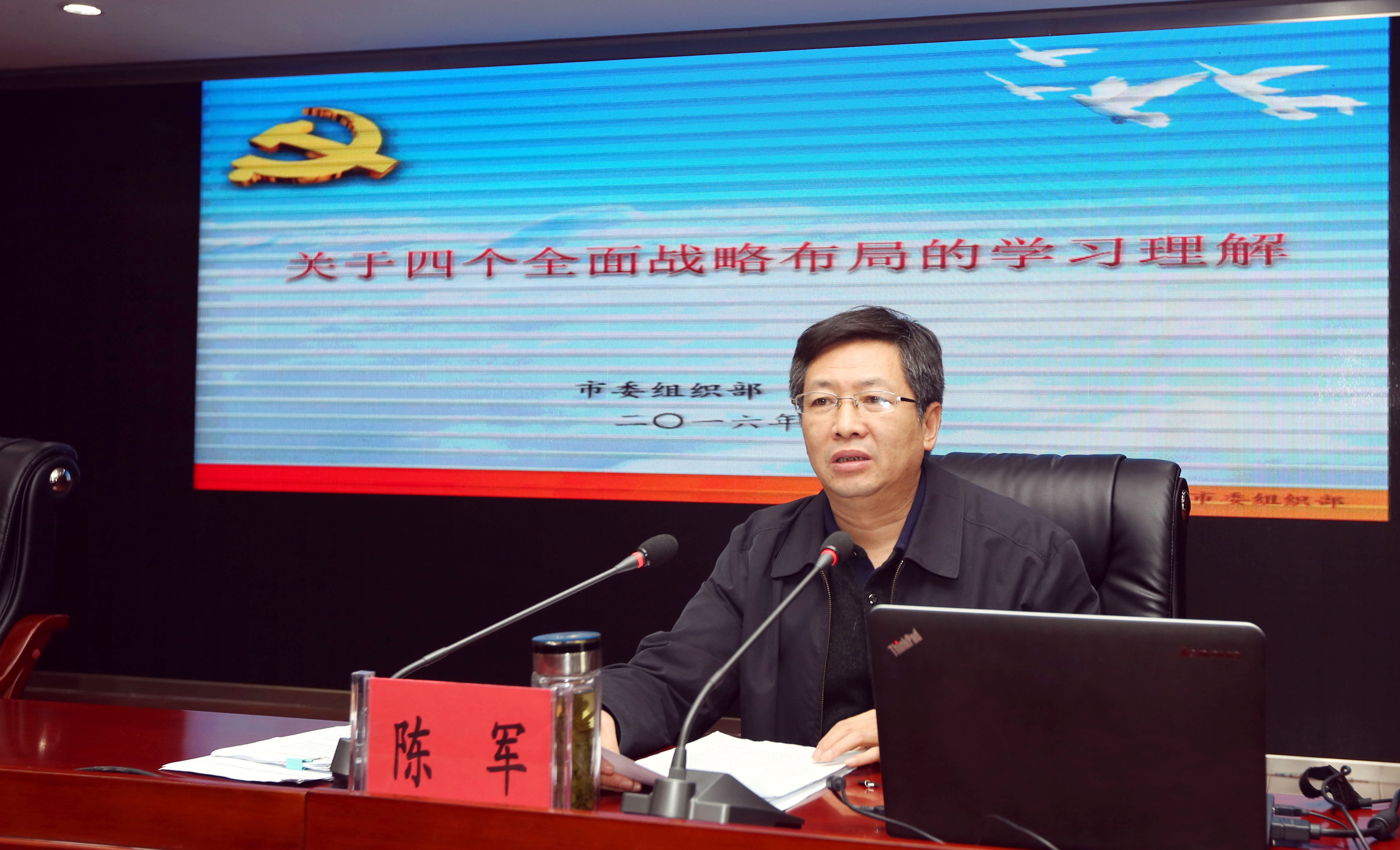 陳軍副部長在專題輔導報告中從領導核心善于形成表述是國之大幸、“四個全面”提出標志我黨治國理政戰略布局全面形成、深刻領會把握“四個全面”的邏輯關系和精神內涵等方面入手,作了深入淺出的講解。報告舉實例、作對比,多角度、深層次、全方位地結合我國國情和社會實際狀況,對習近平總書記“全面建成小康社會、全面深化改革、全面推進依法治國、全面從嚴治黨”進行了系統深入、生動具體的分析解讀。報告內容豐富、內涵深刻、邏輯嚴謹,既有理論的高度,又有實踐的深度,既有全面總結概括,又有細致入微分析,與會人員紛紛表示深受教育和啟迪。