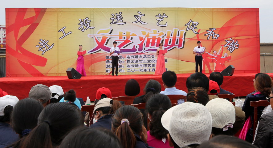 1011日下午,由連云港市總工會主辦、集團公司承辦、市演藝集團演出的“進工投、送文藝、促和諧”文藝演出在灌西投資公司精彩上演,市總工會副主席陳健、集團公司工會主席戴鴻鳴等領導,以及1000余名觀眾觀看了演出。