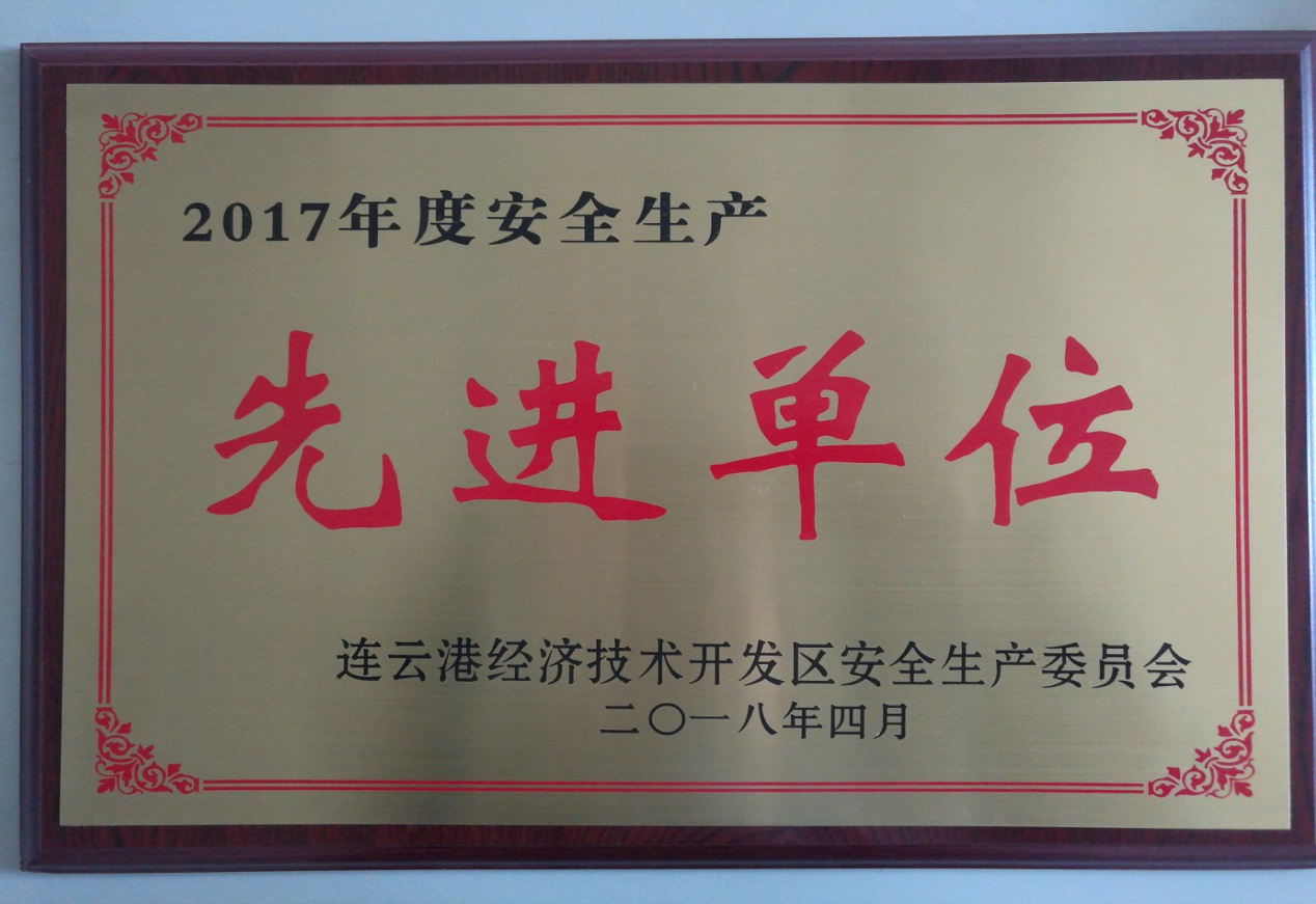2018年4月28日,開發區2017年度安全生產會議在新海連大廈召開。會上對18家“安全生產先進單位”和26名“安全生產先進個人”進行了表彰。我公司榮獲2017年度開發區“安全生產先進單位”榮譽稱號。(氨綸宣)