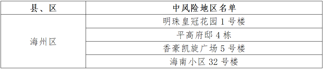 連云港市中風(fēng)險(xiǎn)地區(qū)(4個)