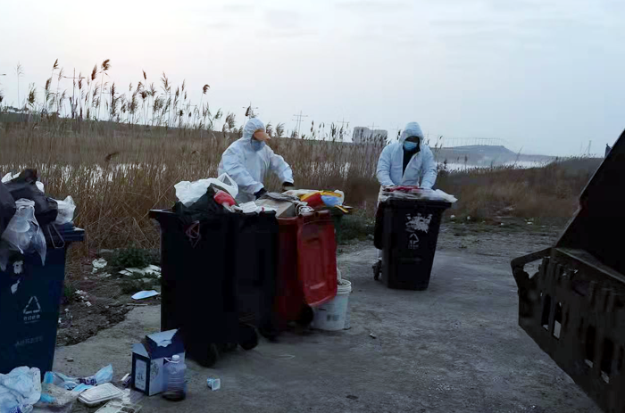 疫情防控期間,保潔分公司要保障徐新路、海濱大道等主干道路及幸福家園及張圩小區(qū)周邊道路等范圍(600多萬平方米)垃圾日常清運(yùn)的同時,要將徐圩新區(qū)人民醫(yī)院核酸檢測點(diǎn)垃圾清運(yùn)到位。他們在共產(chǎn)黨員耿恒發(fā)的帶領(lǐng)下,做好疫情防控措施,早5晚8開展工作。進(jìn)入三月,天氣逐漸轉(zhuǎn)暖,防護(hù)服“籠罩”已不是那么舒服,在陽光照射下,汗水很快便浸濕了衣襟,但他們無怨無悔。面對大量檢測廢物和口罩,帶著未知的病毒風(fēng)險,日清運(yùn)垃圾30多噸,清理消毒各類垃圾桶600余個。