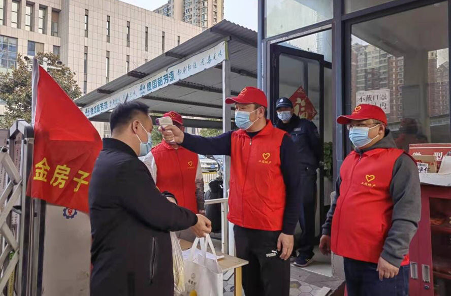 亮出黨員身份,勇當戰“疫”榜樣。自本次疫情發生以來,公司廣大黨員積極響應《疫情防控志愿者服務招募令》,就近參加所在社區疫情防控志愿者服務工作,彰顯了“金房”黨員的擔當,用實際行動讓鮮紅的黨旗在疫情防控一線高高飄揚。志愿者在協助社區人員做好核酸檢測登記、清潔消毒、防疫宣傳的同時,還做好了防疫攻擊戰的后援穩控工作。該公司常務副總經理陳青山,所在小區為中風險防控區,實行封閉式管理,作為一名共產黨員,在做好個人防護的同時,主動參與到社區黨員志愿者服務隊中去,為小區居民當起了“蔬菜快遞員”,為大家送去了蔬菜、米面油等生活必需品?!靶^沒有電梯,雖說有點累,但是當聽到隔離人家的開門第一句話:謝謝你,志愿者,辛苦了……,心里感覺暖暖的,所以做公益使人快樂!”陳青山帶著微笑這樣說道。在該公司,這樣的黨員志愿者還有很多,尚東現代城體溫檢測志愿者孫宏輝、海連新天小區核酸檢測志愿者王臻穎、猴嘴昌圩社區核酸檢測登記員王統安等等……他們以“逆行者”的姿態,展現出新時代金房黨員志愿者的風采。