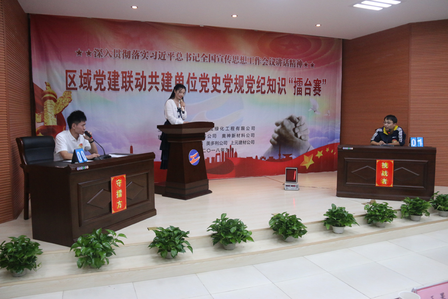 春華秋實,枝繁葉茂。在這美好的金秋時節,集團公司大浦片區區域黨建聯動共建單位黨史黨規黨紀知識“擂臺賽”于930日下午在華茂綠化工程公司順利進行,來自華茂、神特新材料、奧神新材料、海洲灣、美多利、上元建材等6家單位22名選手參加比賽。經過近2個小時、23輪的激烈角逐,華茂公司的14號選手楊方沖出重圍,奪得冠軍。