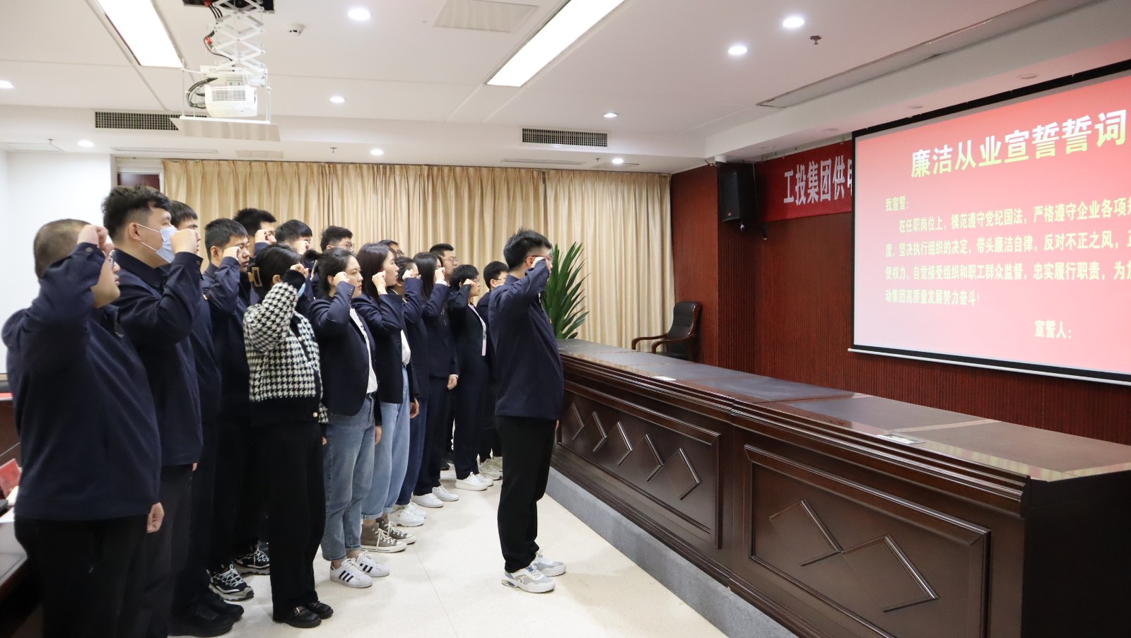 會上,九零后年輕管理人員參加廉潔從業宣誓并簽訂個人廉潔承諾書。(王雨)