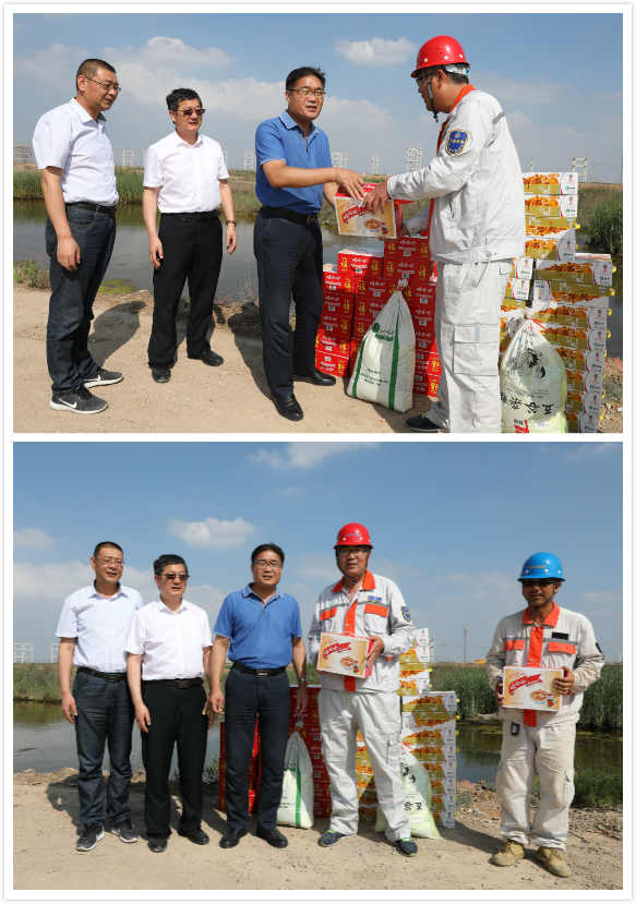 7月20日下午,集團(tuán)公司工會(huì)主席劉承志,副主席盧同根一行,深入公司施工一線,走訪慰問(wèn)職工,把綠豆、飲料等防暑降溫用品送到他們手中,在炎炎夏日,為一線職工送去集團(tuán)公司的深切關(guān)懷。