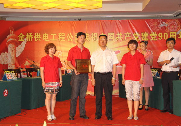 6月29日,公司舉行紀念建黨90周年知識搶答賽,共有八支代表隊參加。經過角逐,公司機關黨支部代表隊、灌西供電所黨支部代表隊和徐圩供電所黨支部代表隊分獲一、二、三等獎。(司宣)