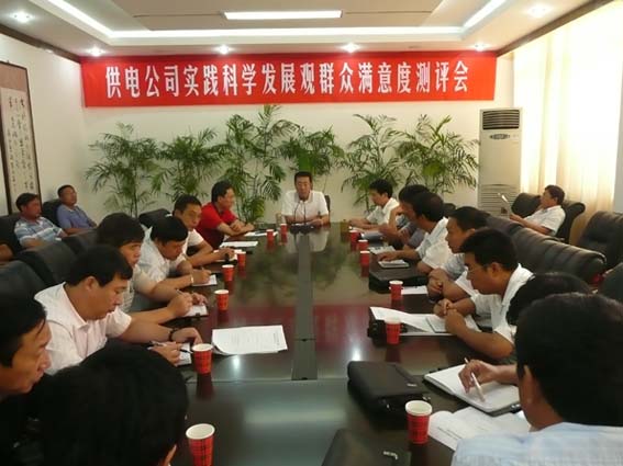 組織學習實踐活動群眾滿意度測評,是學習實踐活動的一個重要環節,也是衡量學習實踐活動成效的重要標準。為此,我公司根據市委和集團公司的要求,于8月19日在公司會議室對開展學習實踐活動情況進行群眾滿意度測評。公司全體人員、供電所領導班子成員、職工代表40余人參加了測評,切實使滿意度測評結果客觀真實反映公司學習實踐活動的成效和取得的豐碩成果滿意度達95.7%。