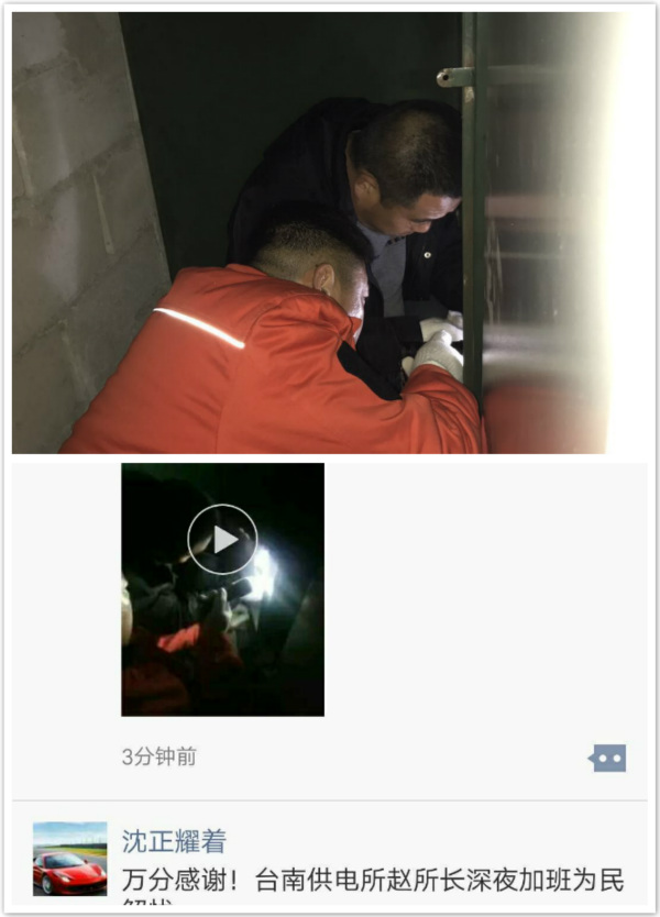 深夜這家單位特地在朋友圈為我們的師傅們點贊。這讓我們不由得想起這些年來師傅們所得的集體榮譽是實至名歸。也說明了我所貫徹落實了公司二屆四次職代會上孫總的報告里“堅持立足優質服務”指示。利用我們的資源打出短平快優勢,做到供上電、供好電、供安全電。(臺南供電所)