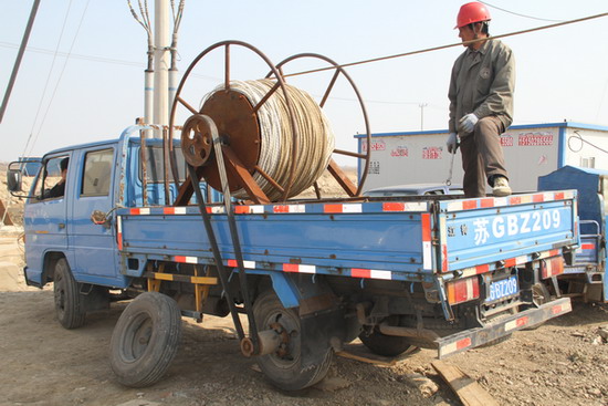 該所在承接的金海拋填工程供電線路架線中,首次遇到使用直徑240毫米的大導(dǎo)線,與原來施工中架設(shè)的導(dǎo)線50毫米相比,放線過程施工難度明顯加大。施工初期,他們沿用過去的放線設(shè)備,采取集中眾多人力、肩扛人拉的辦法,不僅職工勞動強(qiáng)度大,而且施工進(jìn)度緩慢。