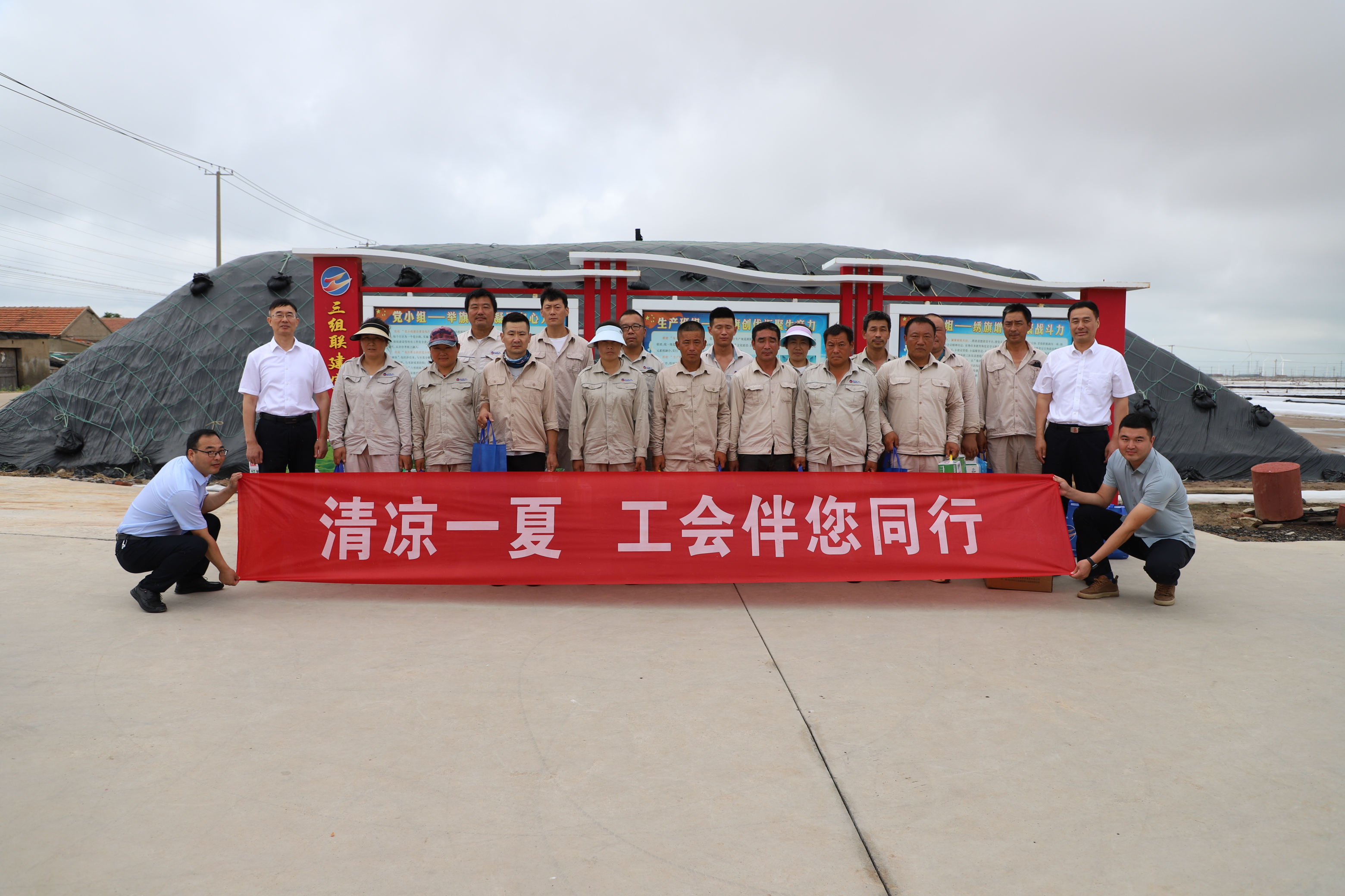 似火的驕陽擋不住心系職工的腳步,正逢炎夏的7月18日,集團公司黨委副書記、副董事長、總經理張六林,副總經理陳如軍等一行深入日曬制鹽公司灘頭為奮戰(zhàn)在一線的職工“送清涼”。投資公司黨委書記、董事長孫政權,總經理吳衛(wèi)平,黨委副書記、工會主席王宏,常務副總經理徐一林陪同。