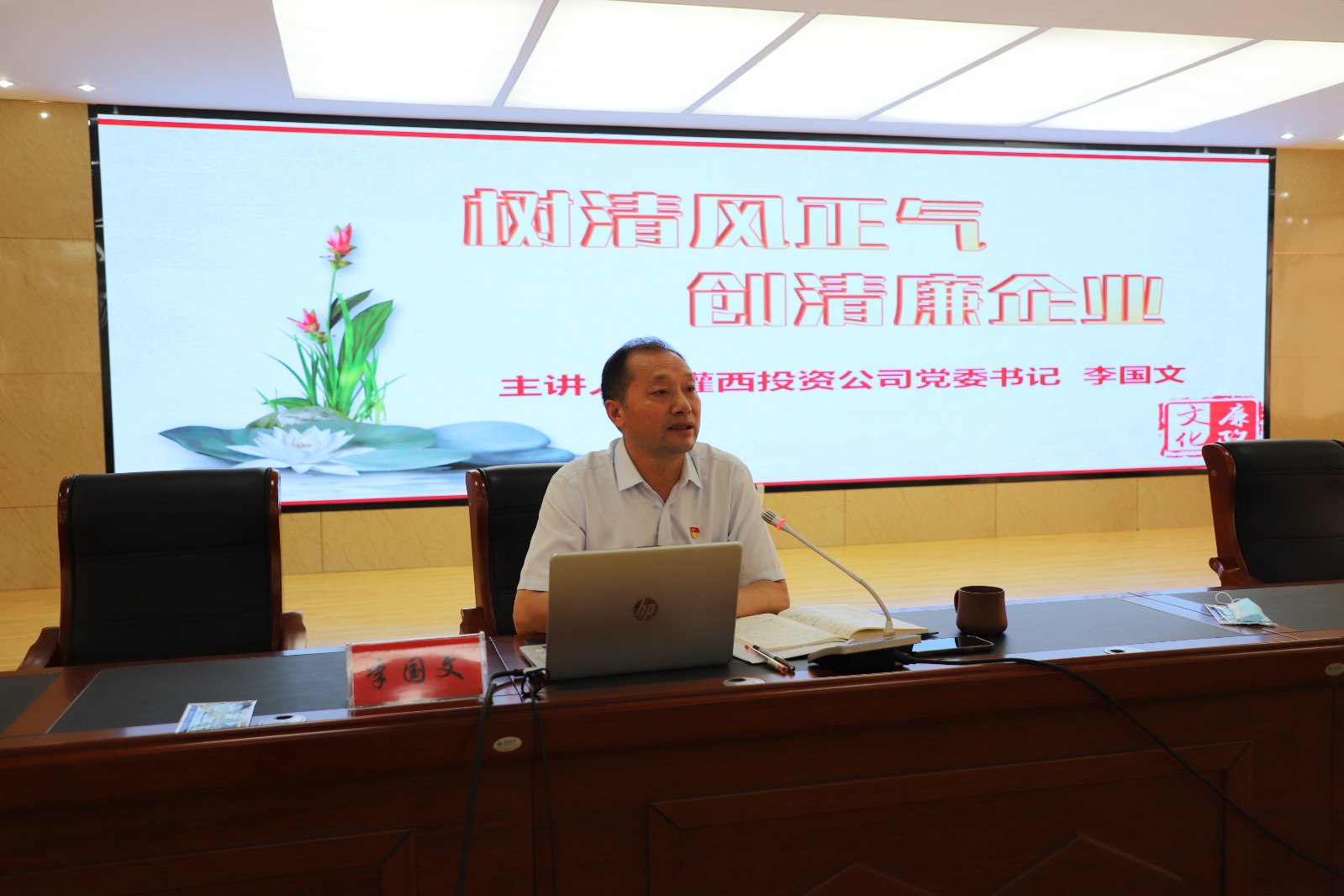 會議最后,李國文以“樹清風正氣 創清廉企業”為主題,結合公司工作實際,為大家上了一堂生動的廉政黨課。以正反面典型故事案例,教育警醒黨員干部自覺帶頭對照這“兩面鏡子”,要求全體黨員要以案為鑒,打牢思想根基,杜絕私欲膨脹,保持警鐘長鳴;要堅守“四心”,不忘初心,珍惜自身前程;守住清心,不攀比;修好內心,自覺加強黨性鍛煉和黨性修養;常懷律己之心,常修為官之德。警告大家,不觸底線、不越紅線。守住政治底線、夯實合規底線、筑牢廉政防線助推企業高質量發展的重要性。(西宣)