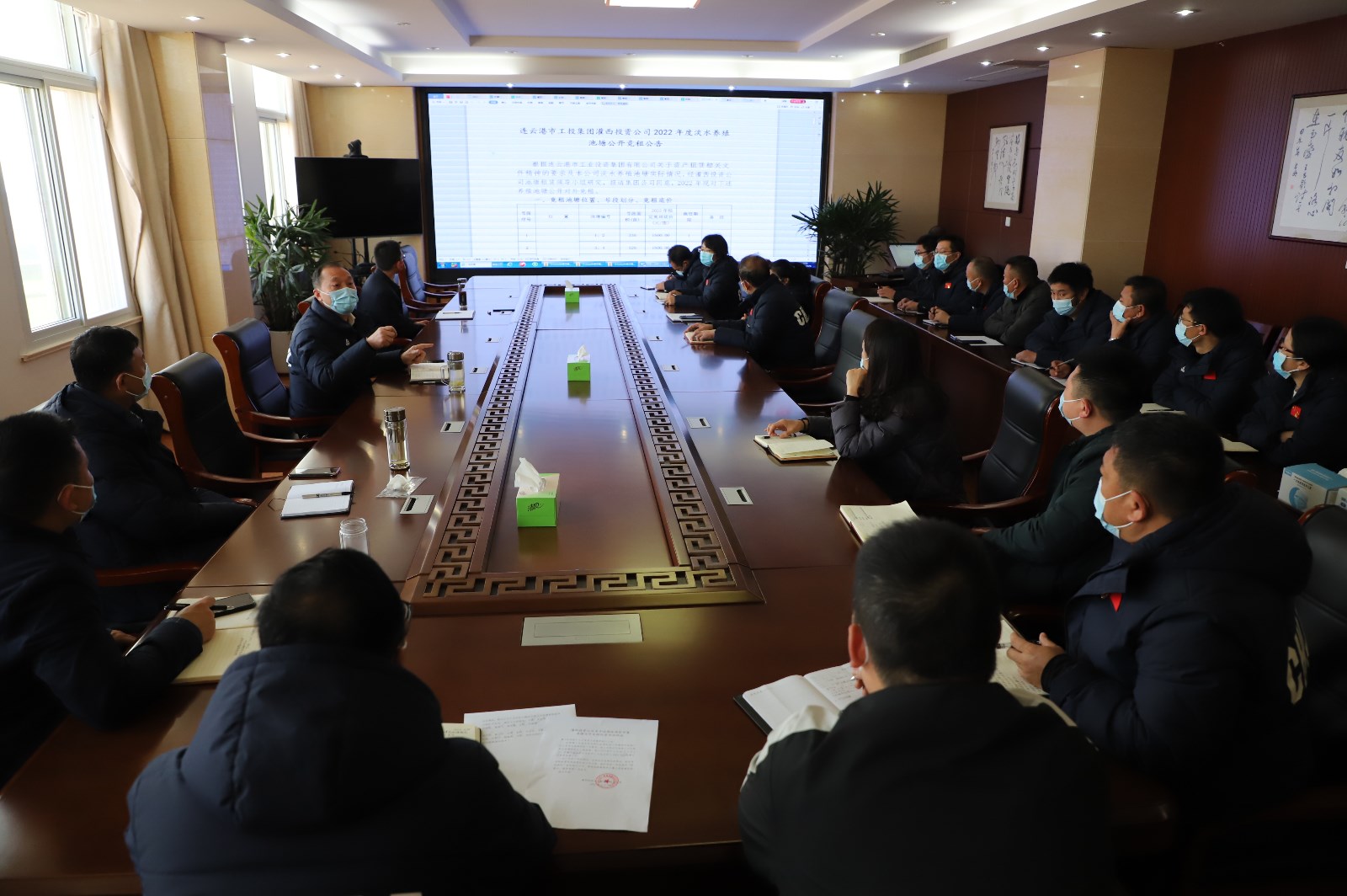 3月26日上午,灌西投資公司在機關(guān)三樓會議室召開2022年度池塘租賃領(lǐng)導小組(擴大)會議,公司黨委書記、董事長、總經(jīng)理李國文、常務(wù)副總經(jīng)理吳衛(wèi)平、總經(jīng)理助理潘二衛(wèi)、陳寬樓及各工作組組長、部分工作人員參加會議。