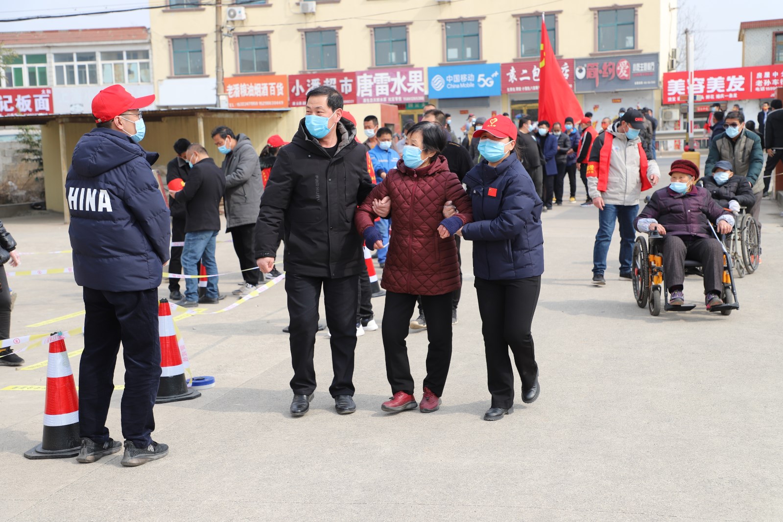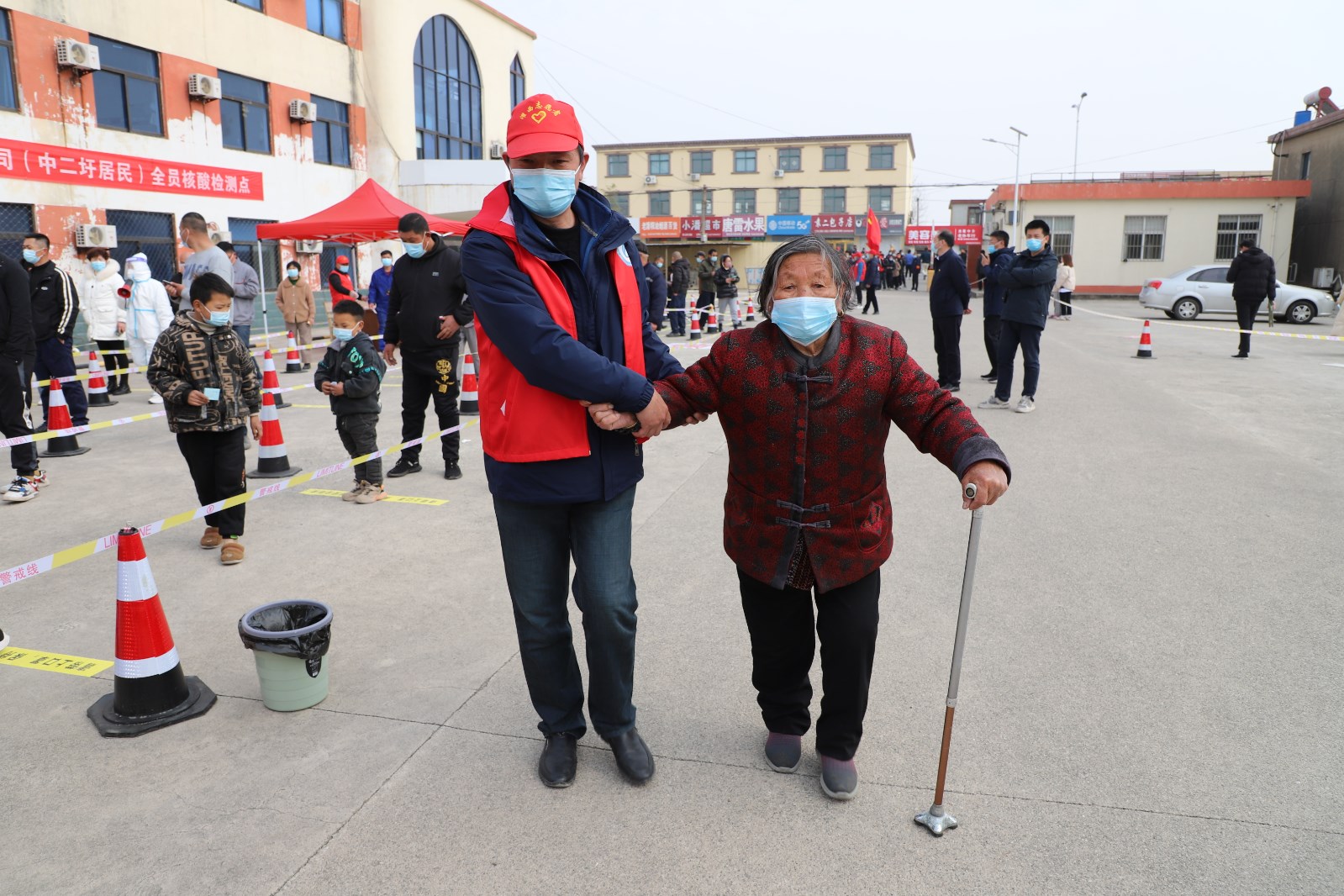 檢測當天上午7點半核酸檢測點準備就緒,核酸檢測正式開始。檢測點用警戒線拉起通道,居民均按規定佩戴口罩有序排隊。排隊候檢的居民先登記身份信息及聯系方式,再由引導員帶隊到指定點位接受醫護人員的采樣,年紀大且腿腳不便的老人由現在志愿者攙扶,優先進行核酸檢測。采樣完畢后,大家按照標識盡快從出口處離開檢測點,減少人員聚集。王靜、許冬彥等志愿者不時地提醒大家注意安全、保持一定安全距離,并維持秩序。整個過程緊張有序,核酸檢測工作于下午五點左右順利完成。