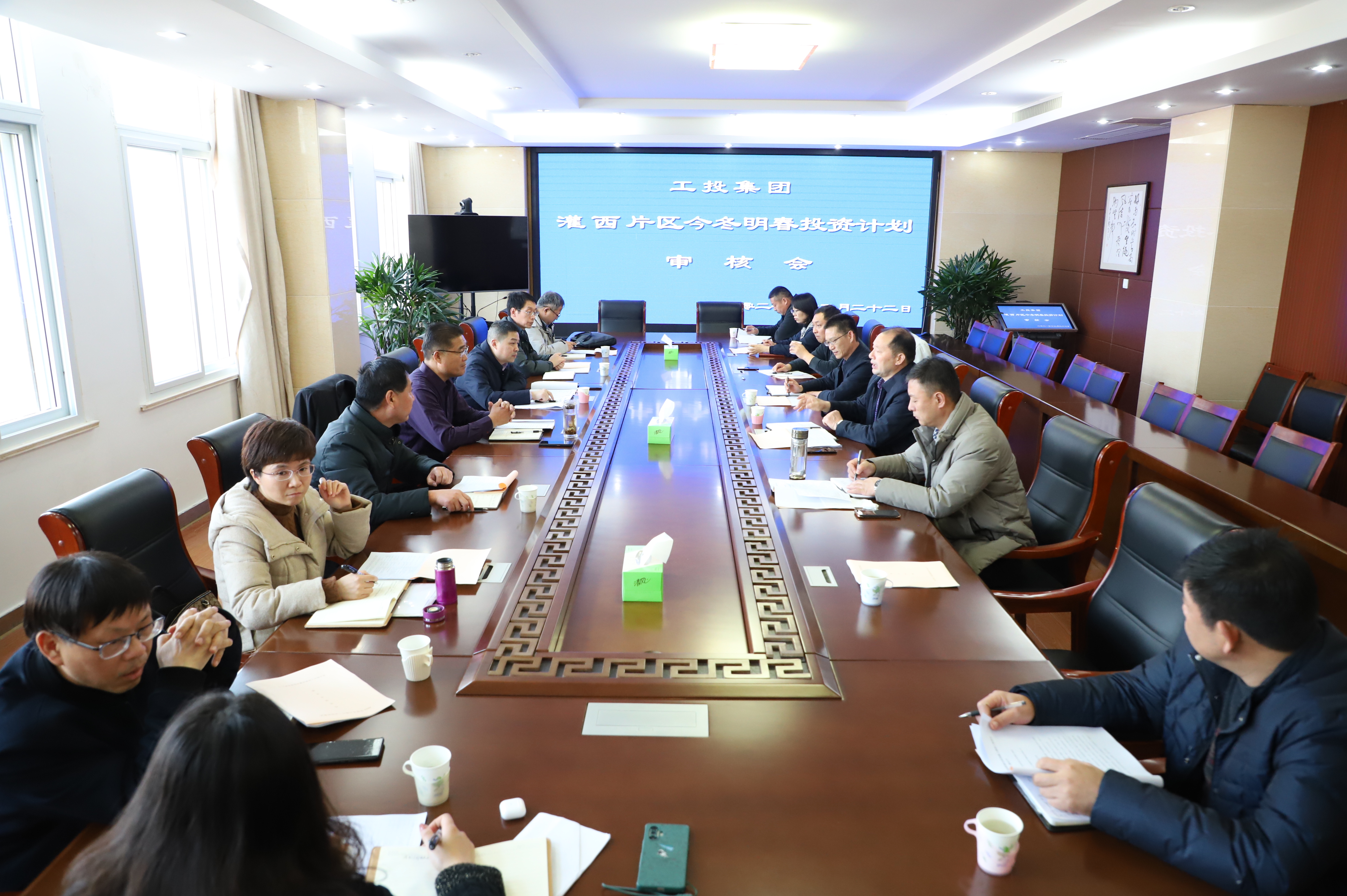 12月22日下午,集團公司副總經理劉承志一行來灌西片區召開今冬明春投資計劃審核會,調研2022年計劃投資項目。灌西投資公司董事長、總經理李國文、常務副總經理吳衛平、總經理助理潘二衛及規劃、財務、安全、資產等相關部門負責人陪同調研。