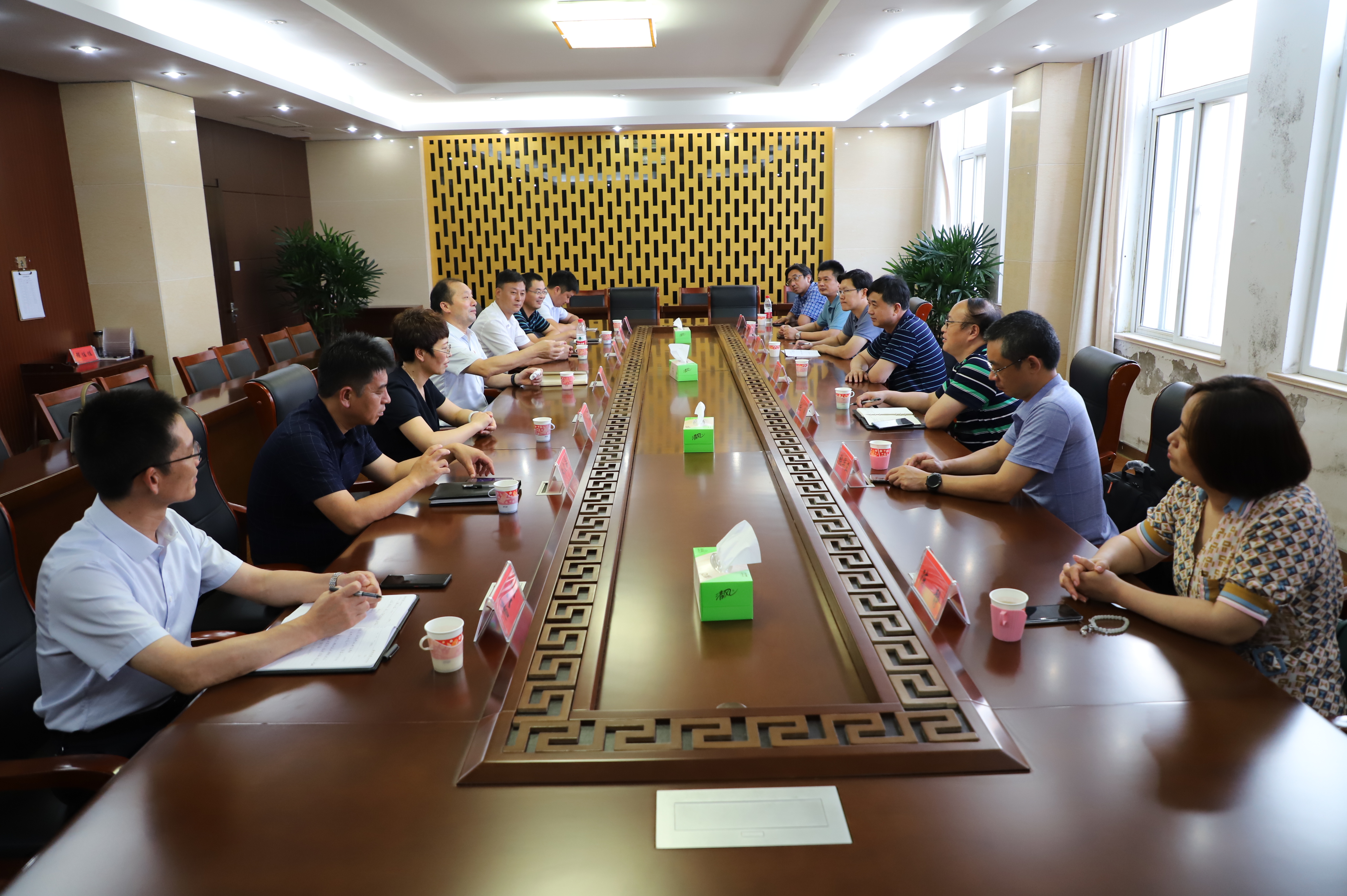 917日,兄弟單位連云港杜鐘新奧神氨綸公司調研組在黨委書記胡傳法帶隊下,來灌西觀摩學習交流工作,灌西投資公司黨委書記、董事長、總經理李國文等領導陪同交流。