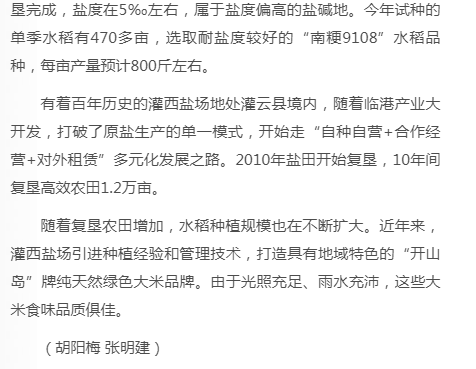 有著百年歷史的灌西鹽場地處灌云縣境內,隨著臨港產業(yè)大開發(fā),打破了原鹽生產的單一模式,開始走“自種自營+合作經營+對外租賃”多元化發(fā)展之路。2010年鹽田開始復墾,10年間復墾高效農田1.2萬畝。