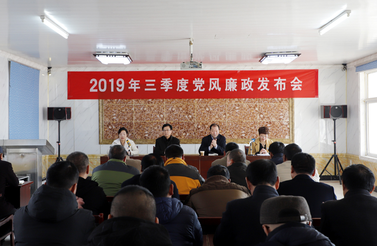 會上,發(fā)布了2019年三季度黨風廉政建設(shè)情況,通報了公司在三季度大宗物資采購、海淡水養(yǎng)殖池塘承包費收繳、工程項目建設(shè)、業(yè)務招待費用使用、人力資源管理、民生實事等方面的情況。