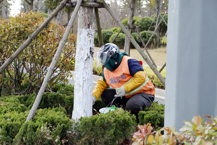 開展冬季樹木凍水澆灌工程。針對冬季降雨量較少的實際,南翼綠化公司集體行動對所轄區域主要干道綠化帶進行澆灌,確保樹木正常生長。組織綠化保潔員工完成對中二圩、灌西職工小區、燕尾新區、辦公樓前綠化帶等地所有綠化植物普灌一次防凍水,對喬木進行開坑澆灌,澆足澆透。同時根據樹木不同的生態習性、特點,全面清理樹體各類附屬物,包括捆綁在樹上的腐爛草繩、木枝撐和影響景觀的雜物等。