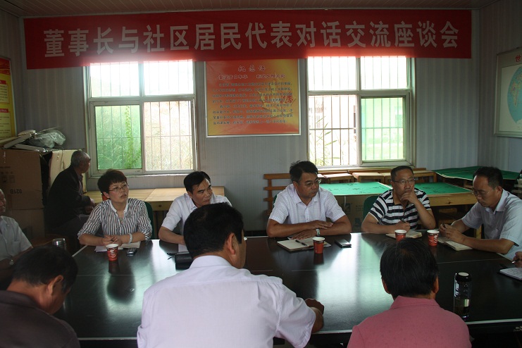 9月14日下午,投資公司在灌西社區召開了董事長與社區居民對話交流座談會。公司黨委書記、董事長王德志與來自灌西各個社區的十余名居民代表面對面進行對話交流,就廣大居民關注的熱點、難點問題進行現場溝通,釋疑解惑,聽取意見和建議。