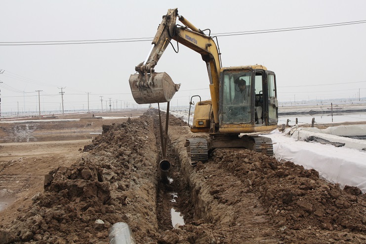 4月5日上午,日曬制鹽公司灘頭機械轟鳴,兩臺挖掘機正按照事先分工,有序的將深埋在地下的廢舊除硫管道挖掘出來。據了解,這些廢舊除硫管道按照原先設計,主要用于承擔鹵水除硫后的輸送工作,后因生產工藝的改進,導致管道一直處于閑置狀態。而此次回收并再次利用這些管道主要是為了在進一步改進生產工藝的基礎上,最大化節約生產成本。據介紹,目前日曬制鹽公司在生產中主要采取串聯式加鹵的方式進行,除硫后的鹵水無論輸送至哪一格塊,都必須按照先后順序依次經過前排格塊,這不僅大大降低了輸送效率,也不利于對鹵水的有效管理,更造成了一部分浪費。相比較而言,通過改串聯式加鹵為并聯式加鹵后,鹵水將會從除硫池直供缺鹵格塊,在提高供鹵效率的同時,也能夠有效降低跑冒滴漏現象的發生。
