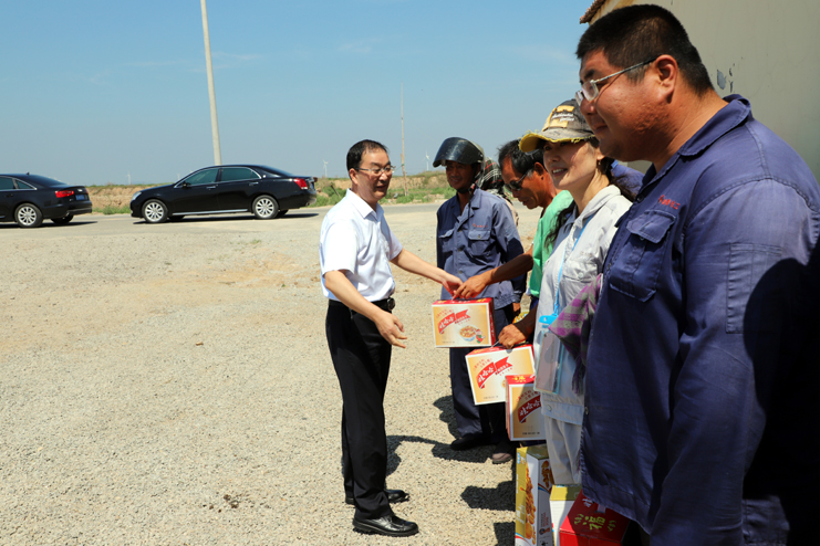入伏以來,持續(xù)高溫,為確保一線生產(chǎn)單位工作順利開展,保證員工身體健康。7月18日上午,集團(tuán)公司總經(jīng)理胡建明、副總經(jīng)理張其海一行深入日曬制鹽公司走訪慰問一線職工,把綠豆、飲料等慰問品送到他們手中,在炎炎夏季,為一線職工送去集團(tuán)公司領(lǐng)導(dǎo)的深切關(guān)懷與陣陣清涼。