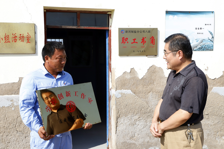 8月22日下午,市總工會(huì)副主席陳健一行到工投集團(tuán)日曬制鹽公司,為連云港市勞動(dòng)模范祝星星“勞模創(chuàng)新工作室”授牌。
