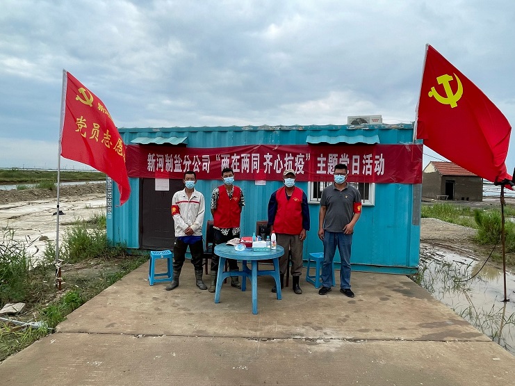 新河制鹽分公司根據(jù)投資公司黨委安排,在零班二期設立卡點,嚴格落實領導干部24小時帶班、值班和疫情突發(fā)狀況報告等制度,支部亮旗、黨員亮徽、職工亮力,共同織就公司疫情防控網(wǎng)。一個支部就是一座堡壘,一名黨員就是一面旗幟,全公司黨員紛紛亮出身份,主動請纓,沖鋒在前,放棄假期積極投身最需要的地方,用行動踐行初心使命,全力打好這場疫情防控阻擊戰(zhàn)!(新河黨支部)