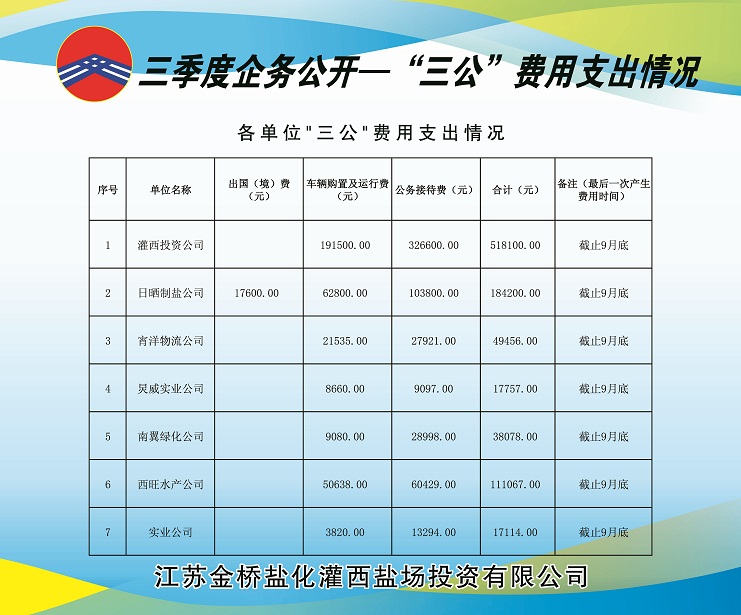 截至9月底,各單位三公費用支出情況如下:
