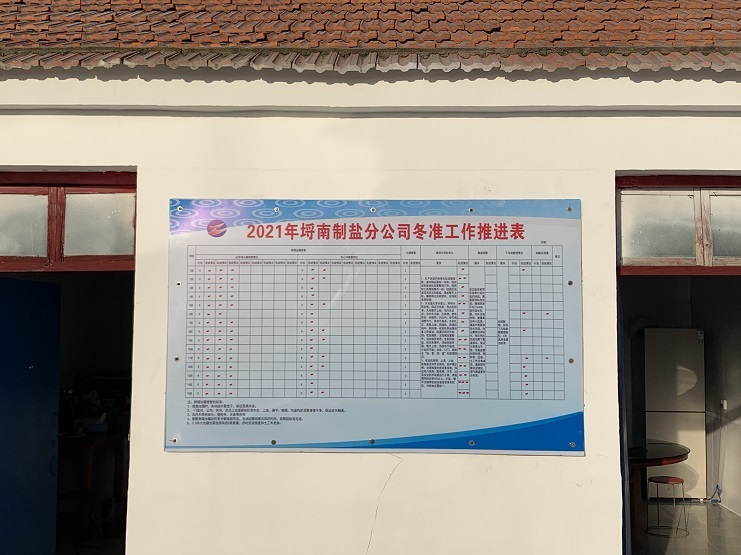 冬季是日曬制鹽收儲鹵水、扒土塘、整理灘場文明的最佳時期,也是為2022年工作起好頭邁好步的關鍵時期,為更好落實“冬準”大會會議精神,126日上午,埒南制鹽公司制定冬準工作推進表,張貼在公司辦公區域墻面上,成立“指揮部”掛圖作戰,打好冬準戰役促。
