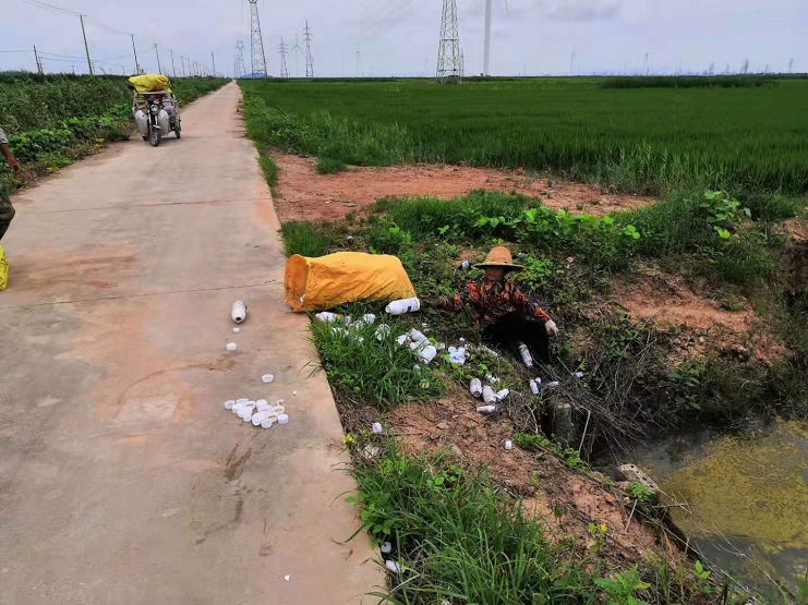 近期正是稻田噴灑農藥的高峰期,許多承包戶將噴灑稻田的藥瓶用完后隨意丟棄在田埂邊、路邊,這不僅會污染居住環(huán)境,影響土壤、水體的生態(tài)平衡,還會對周邊池塘養(yǎng)殖安全造成一定的隱患。為此,該公司專門成立“農田衛(wèi)士”志愿服務隊,深入田間地頭撿拾溝渠廢棄農藥瓶、塑料袋、漂浮物等垃圾,進行集中無害處置。與此同時,加大宣傳力度,使廣大承包戶認識到亂扔廢棄農藥瓶的危害,勸導承包戶不要隨意丟棄農藥垃圾,積極參與到消除農藥瓶污染的行動中去,形成全民動員、人人參與的良好氛圍。