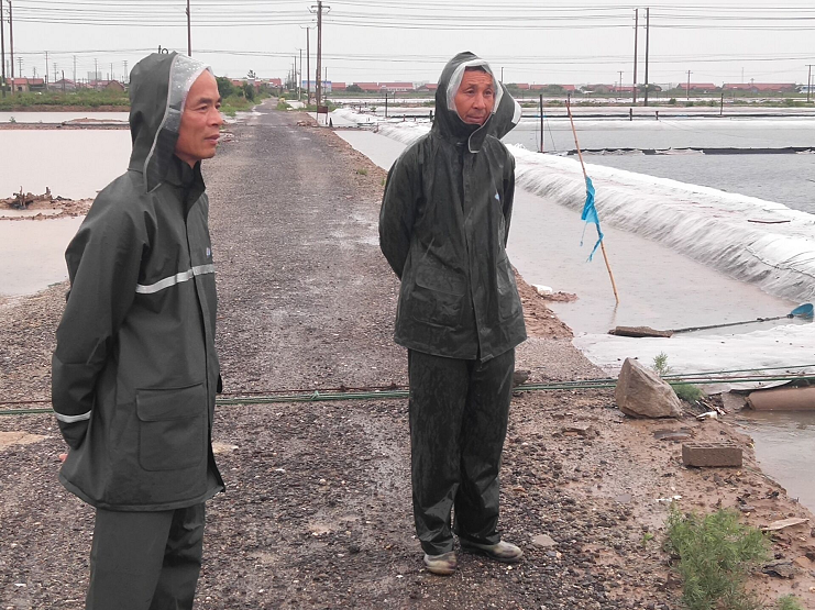 截止目前,海水鹽基地塑池沒有出現倒灌現象,鹵塘沒有過流所有職工全力進行防汛抗災自救!(海水鹽基地)