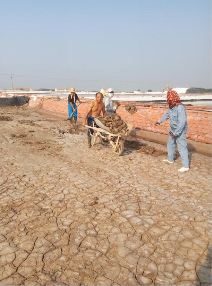 連續的高溫讓人熱得喘不過氣來,正當人們躲在空調下享受清涼的時候,日曬制鹽埒南制鹽分公司的廣大干群仍堅持奮戰在生產一線,搶抓有利天時組織生產?;畈?、除硫、整理池板、做天溝各項工作穩步有序推進。汗水浸濕了他們忙碌的身影子影。