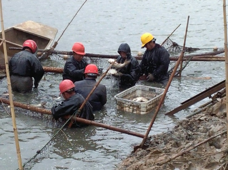 今年來,西旺水產公司認真組織各養殖戶做好淡水魚的養殖生產。從年前的成品魚起捕到進入市場,從整理池塘到訂購魚苗,從供水修路到供應飼料,從放養魚苗到日常喂料,從安全管理到常規生產記錄等等,各個程序和環節安排得有條不紊。目前,淡水養殖步入良性循環軌道,繼去年養殖形勢發生好轉,今年的有望再次獲得大豐收。圖為養殖工人正忙著成品魚的起捕。(西旺宣)