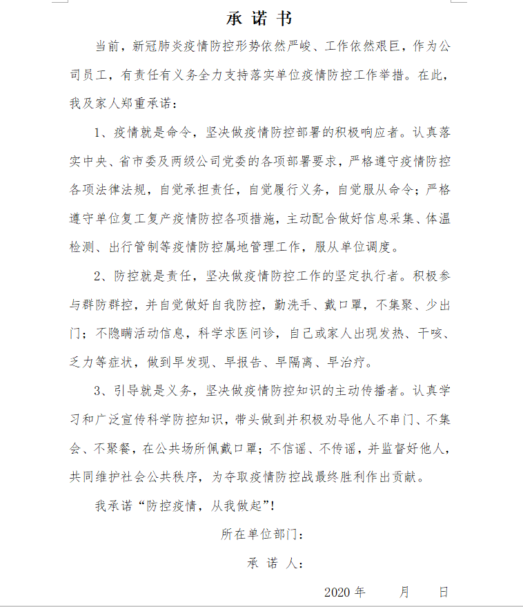 抗擊新冠肺炎疫情承諾書