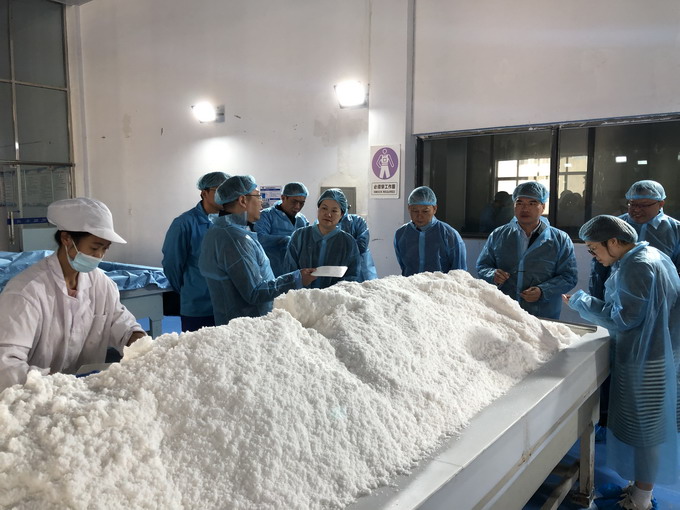 朱桂玉對(duì)劉偉明一行的到來(lái)表示熱烈歡迎,他指出,多年來(lái),雙方合作愉快,實(shí)現(xiàn)了優(yōu)勢(shì)互補(bǔ),互利共贏(yíng)。金橋制鹽公司將一如既往地做好生產(chǎn)各項(xiàng)工作,全力服務(wù)廣鹽集團(tuán)。劉偉明一行相繼參觀(guān)了公司雪花鹽車(chē)間、包裝鹽車(chē)間、加工鹽車(chē)間,詳細(xì)了解了公司鹽產(chǎn)品產(chǎn)銷(xiāo)情況。雙方就加強(qiáng)雪花鹽合作事宜進(jìn)行了深入洽談,并表示將進(jìn)一步精誠(chéng)合作,增進(jìn)友誼,攜手開(kāi)創(chuàng)雙贏(yíng)新篇章。