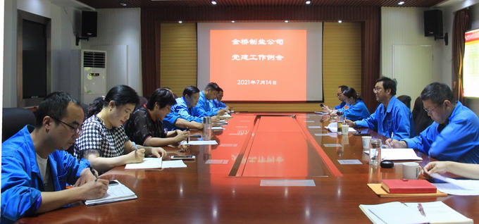 7月14日下午,我公司在四樓會議室召開黨建工作例會。公司黨委副書記、工會主席曹開明主持會議,總經理助理李忠祥、各支部負責人、分會主席及黨群各部門人員參加了會議。