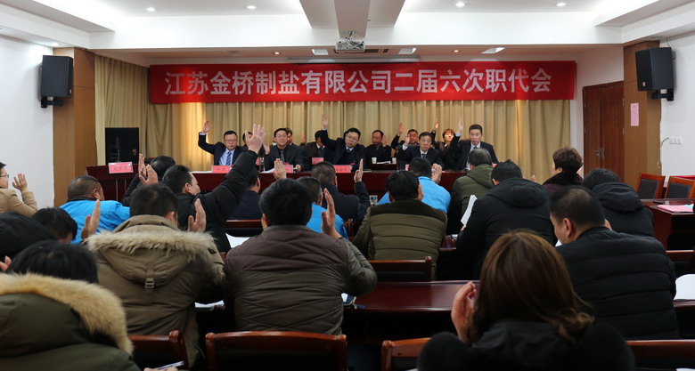 2月15日上午,我公司二屆六次職代會在公司三樓會議室隆重召開,來自各車間、單位、部門的46名職工代表參加了會議,共同商討金橋制鹽發展大計。公司領導班子成員及職工代表出席會議,部分先進代表列席會議。公司董事長、黨委書記、總經理朱桂玉作工作報告。大會由公司黨委副書記、紀委書記、工會主席李昊睿主持。