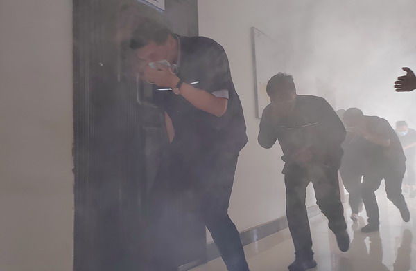 演練分為火災應急疏散、火災應急救援、有限空間應急救援三個部分展開。在火災應急疏散演練中,設定三樓會議室為模擬火災現場,人員2分鐘內從指定逃生路線規范、有序、迅速撤離到了安全地帶;火災事故應急救援和有限空間應急救援分別模擬紙箱庫著火及地龍有害氣體窒息,分信息報告、啟動應急響應、現場警戒、醫療救護、事故搶險等各處置環節,整個演練緊張有序,過程流暢,達到檢驗應急預案的可行性和提高應急救援人員的應急處置能力的效果,為完善我公司應急預案提供實踐依據。