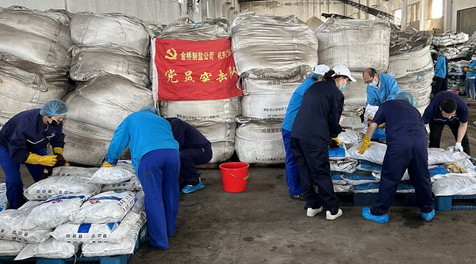 6月6日-6月7日,我公司黨委開展“我為黨旗增光添彩”志愿服務(wù)活動。機關(guān)支部共30名黨員協(xié)助車間整理庫房,共整理成品鹽130余噸。活動的開展進一步發(fā)揮了“兩個作用”,積極踐行了志愿服務(wù)精神,為車間一線辦實事、解難題。(金宣)