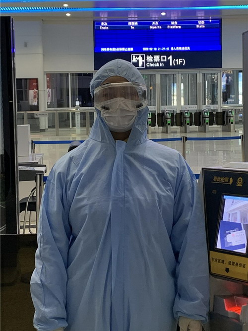 測量體溫看似輕松,但是對測溫槍反反復復的抬起放下,經常累得胳臂酸疼。除了做好體溫檢測工作,每天還要回答成百上千名乘客的問題,維持秩序。看似簡單的話語、簡單的動作,但每天一個班次結束后,幾乎都是喉嚨嘶啞,她胳膊酸痛。因為工作的需要,幾乎每天一直都是站著工作,到家里腿都很僵硬。