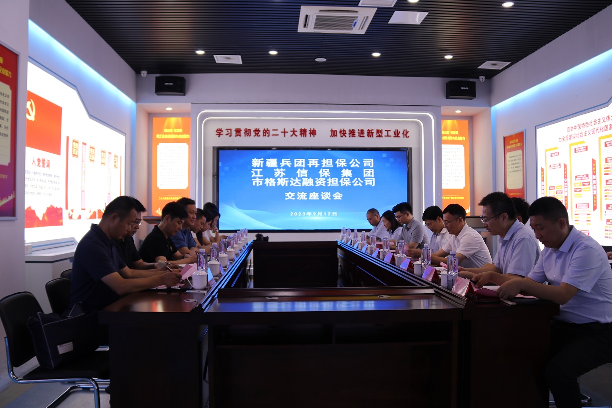 9月12日下午,新疆生產(chǎn)建設兵團再擔保有限公司黨委書記、董事長李彥武一行到訪格斯達擔保公司。江蘇省信保集團黨委副書記、總裁王松奇,集團黨委副書記、副董事長、總經(jīng)理張六林等領(lǐng)導出席座談會。
