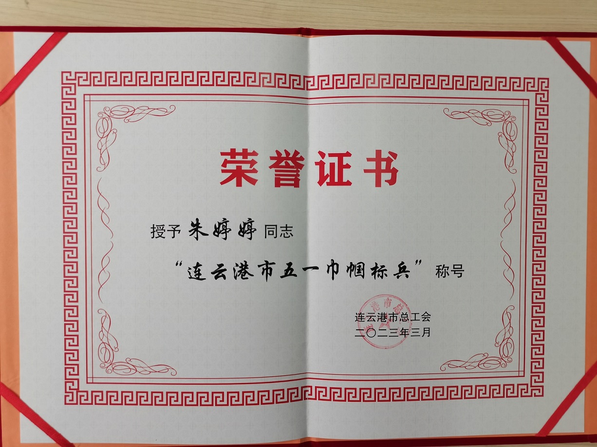 五一勞動節(jié)來臨之際,連云港市總工會下發(fā)獎勵通知,授予格斯達擔保公司風險部副經(jīng)理朱婷婷“五一巾幗標兵”稱號!