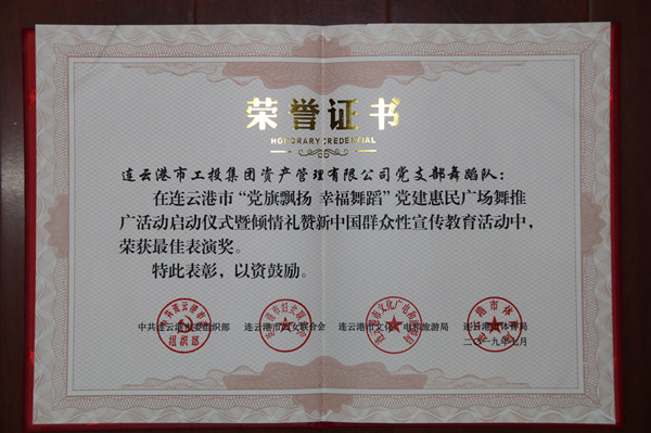 7月16日,連云港市“黨旗飄揚幸福舞蹈”黨建惠民廣場舞推廣活動啟動儀式暨群眾性宣傳教育活動在市文化藝術中心舉行。啟動儀式上,來自工投集團資產管理公司舞蹈隊登臺展演,榮獲市委組織部、市婦聯、市文廣旅局、市體育局聯合頒發的“最佳表演獎”。 為了參加這次活動,公司舞蹈隊12名隊員進行了近一個月的辛苦排練。隊員們在表演中動作精準,以零失誤完成各個動作,獲得觀眾熱烈掌聲和高度評贊。此次登臺演出,充分展示了工投集團職工的精神面貌和公司舞蹈隊廣場舞的扎實基礎。 (資產管理公司宣) |
