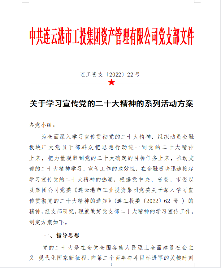 為在金融板塊快速掀起學習宣貫黨的二十大精神熱潮支部精心組織、積極籌劃,完善學習方案,創新學習教育形式,豐富黨建活動載體,支部結合公司實際,專門制定《學習宣傳貫徹二十大精神學習方案》、《關于開展“七個一”二十大精神專題學習活動的意見》。