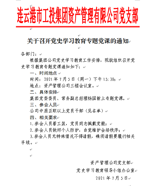 關于召開黨史學習教育專題黨課的同志