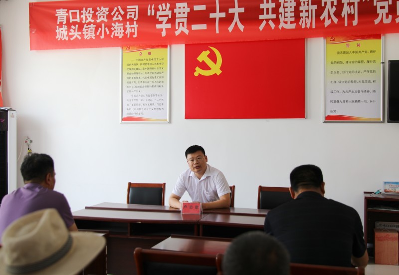 為推動(dòng)黨的二十大精神在鄉(xiāng)村落地生根,6月28日上午,青口投資公司、城頭鎮(zhèn)小海村聯(lián)合開(kāi)展“學(xué)貫二十大 共建新農(nóng)村”黨員課堂,由公司機(jī)關(guān)優(yōu)秀黨務(wù)干部組成的二十大精神宣講隊(duì),走進(jìn)結(jié)對(duì)共建的贛榆區(qū)城頭鎮(zhèn)小海村開(kāi)展集中式、通俗化宣講。公司黨委副書(shū)記、工會(huì)主席梁永,城頭鎮(zhèn)副鎮(zhèn)長(zhǎng)王延光,城頭鎮(zhèn)小海村支部書(shū)記徐坤參加活動(dòng)。
