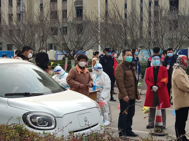 從3月5日起,公司配合社區已陸續啟動了5輪重點區域人員核酸檢測,及時、高效、科學、有序。“居民朋友們,請提前準備好健康碼、身份證,全程佩戴口罩,有序排隊,保持距離,等候檢測……”在核算測點可以看到,醫護“大白”、黨員志愿者等各司其職,有條不紊地開展各項工作。參加核酸檢測的居民在“小喇叭”的提醒和工作人員的引導下陸續進行檢測。排隊、測體溫、掃碼、進入檢測區域、依次進行人員登記、采樣……整個過程及時、高效、科學、有序。為確保核酸檢測做到應檢盡檢,公司還聯合社區開展“敲門行動”,協助配合做好上門信息登記、政策宣傳等工作,用實際行動,擔當作為,為百姓筑牢了抗疫防線。