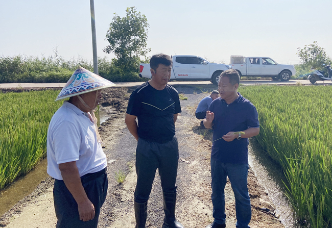 公司領導班子帶頭深入到基層一線開展調研、走訪座談。開展尾水處理專項生態環保調研,為開啟綠色生態養殖新路奠定堅實基礎。深入田間地頭查看水稻病蟲發生與防治情況,組織黨員骨干、田狀元、技能大師等技術力量開展“田頭會診”,為秋糧豐產打牢基礎。
